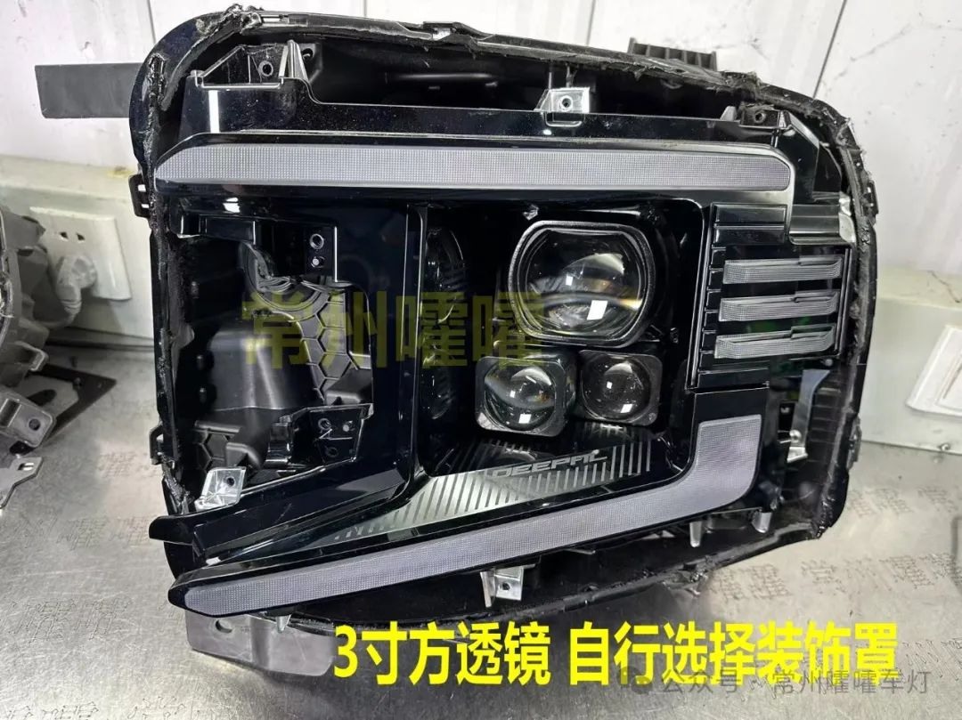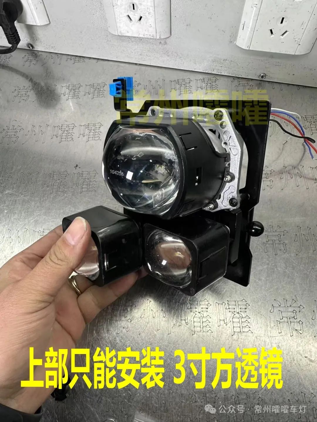此款车暂时做了2款方案:一个是 3寸方透镜+2个矩阵 方案 。 还一个是 单独3寸方案(不挑透镜).(4矩阵方案需要定做 因为色框需要打磨更多 相对优势不如第一个方案,但是实在需要也可以定做。)