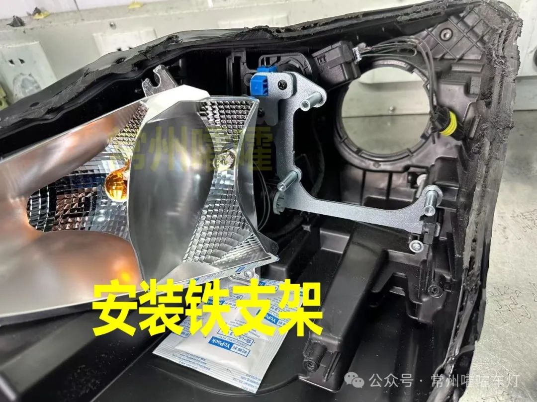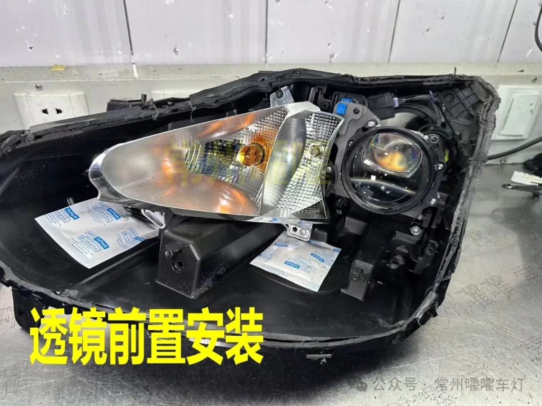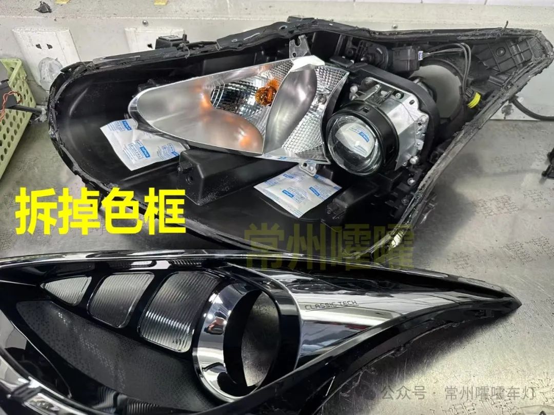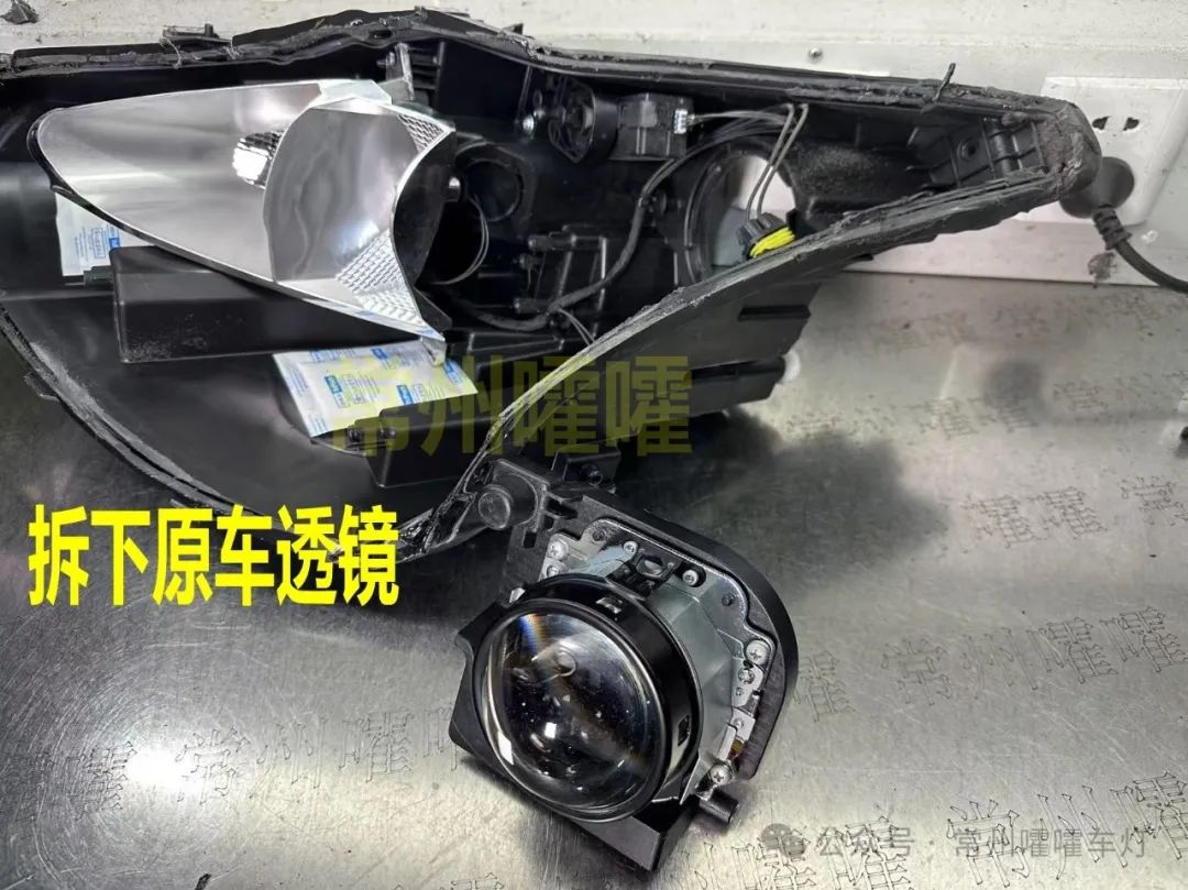 低配卤素透镜前面透镜口是圆的,高配LED 透镜口是扁的,两款配置支架不能通用,高配LED款 公众号也有教程 请自行查看。改之前请先确认大灯配置。