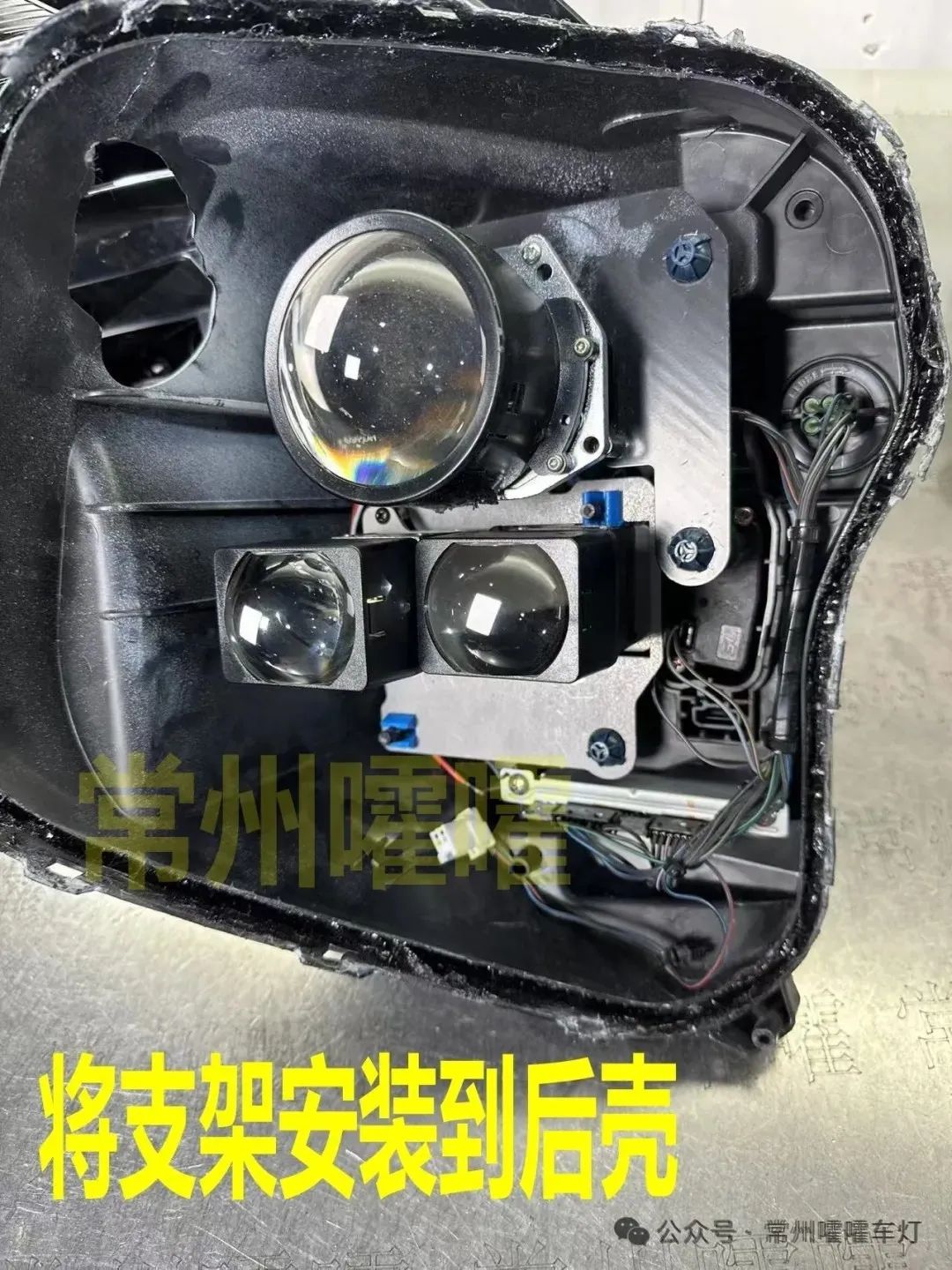 此款下部远光位矩阵支架有 优化了结构 顺便做下补充教程,上部近光位改3寸 需要配嚯嚯款专用色框