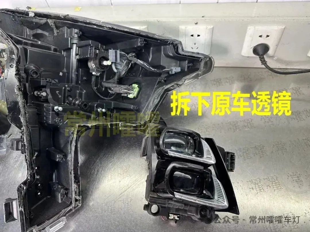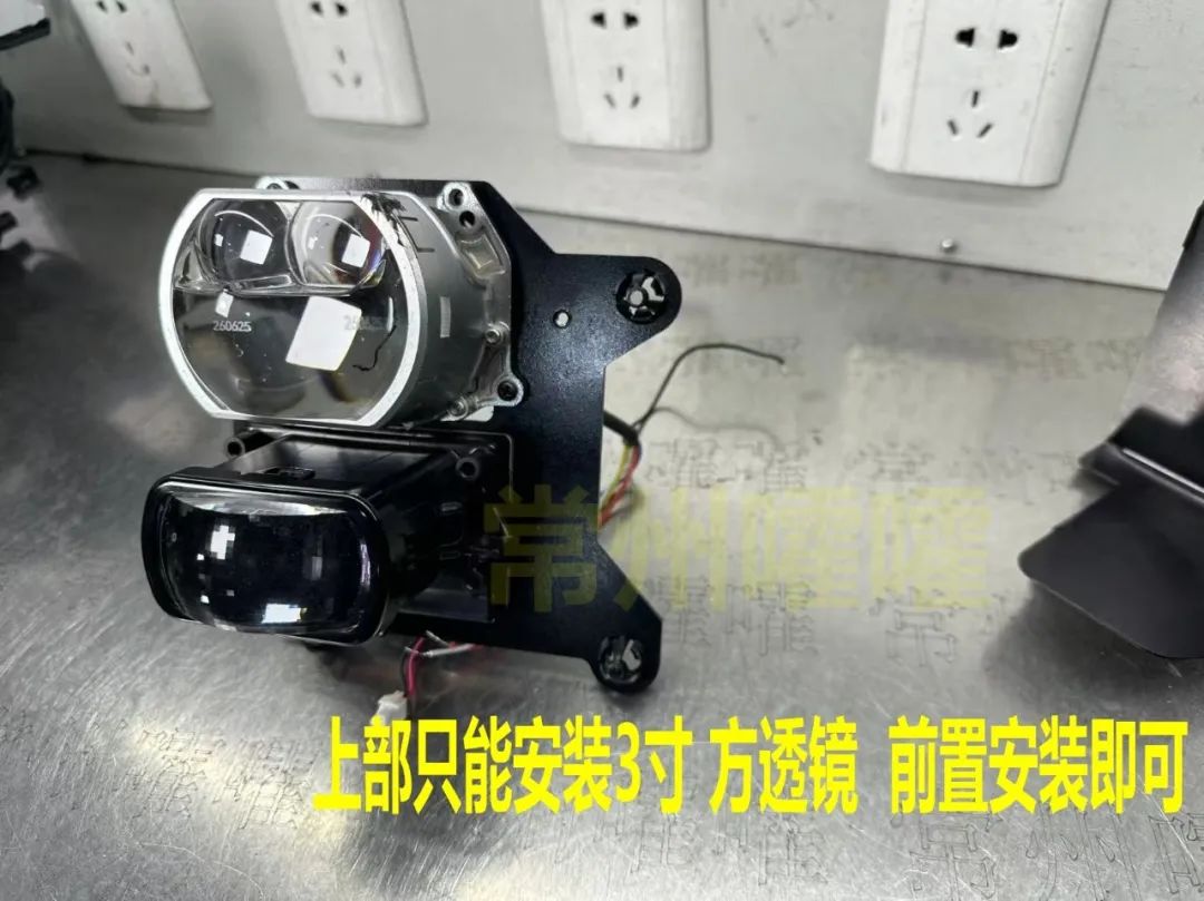 高配车型下面代自适应远光 有的客户想要保留此功能 所以我们有做了这个方案。但是上部只能安装3寸 方透镜。